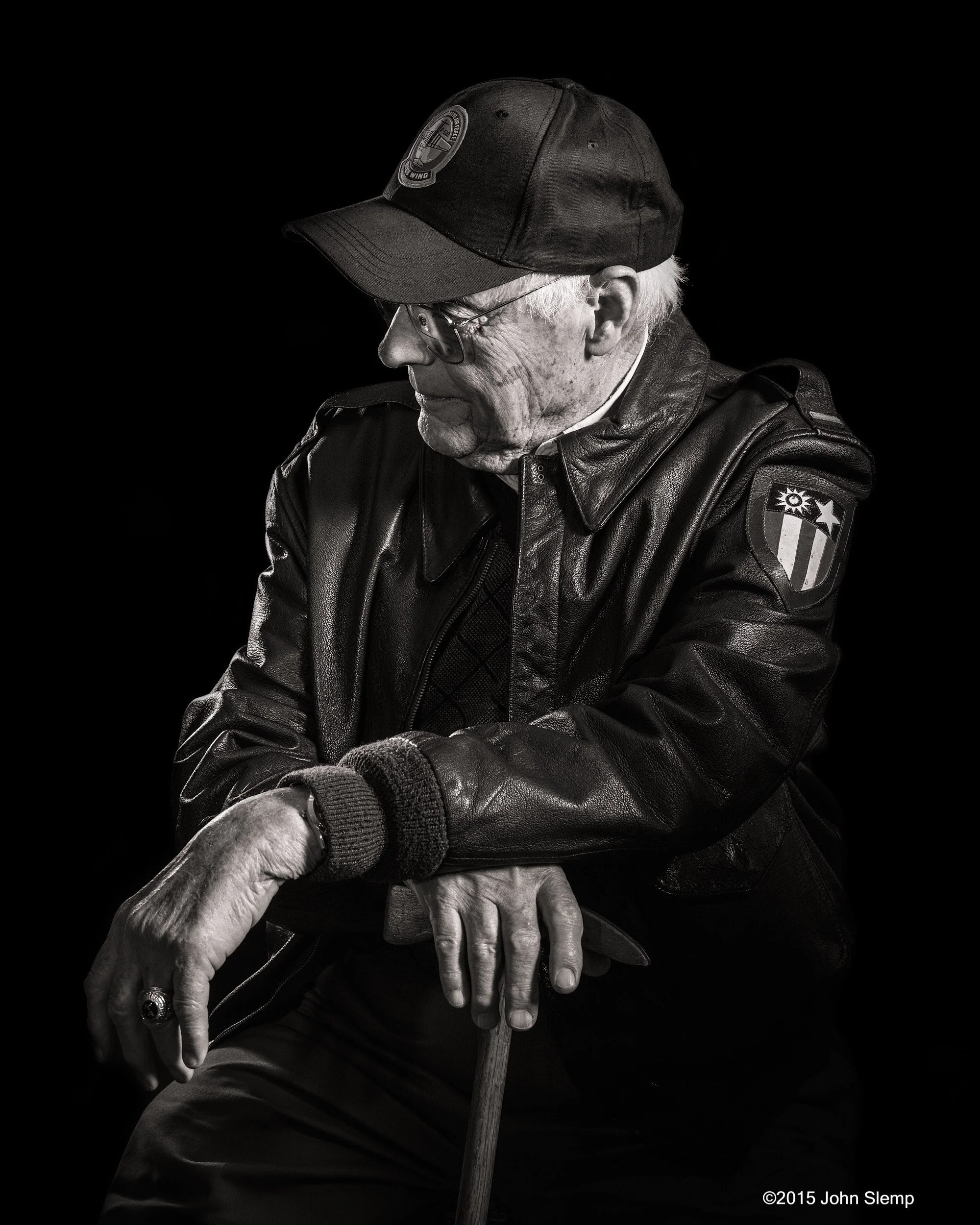 #johnslempphotography #blackandwhitephotography #photocontestwinner #wwiihistory #fighterpilot #veteran #bomberboys #a2jacket #stories #armyairforce #portraitphotography #profotolighting #phaseonephoto